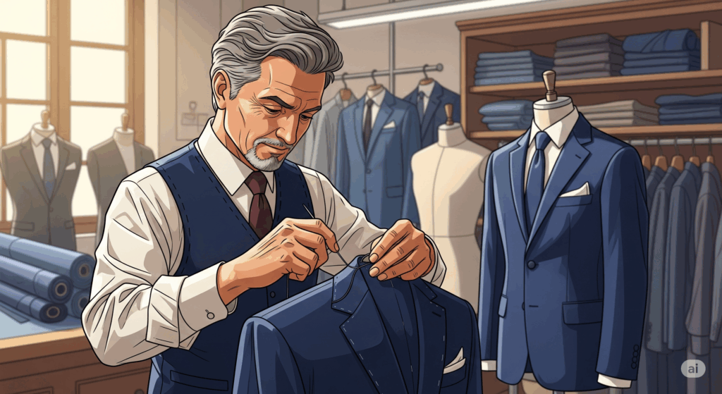 最も信頼性が高く、私たちテーラーが一番におすすめする方法です。最大の利点は、そのスーツの「カルテ」を完全に把握していること。仕立てた際の採寸データはもちろん、使用した生地の特性や内部の構造まで熟知しています。そのため、スーツに最も負担が少なく、かつ最も美しく見える修理方法を提案できます。お客様の体型の癖や好みも理解しているため、「もう少しだけ、こうして欲しい」という細かなニュアンスも伝わりやすいでしょう。費用は専門店より少し高くなる場合もありますが、それ以上に「失敗しない」という絶対的な安心感は何物にも代えがたい価値があります。