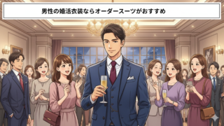 男性の婚活衣装ならオーダースーツがおすすめについて書いています。男女の出会いも多様化した昨今、婚活パーティーやお見合いで、第一印象を左右する要素が「服装」です。自分の体型に合わせて仕立てるオーダースーツという選択肢です。そのポイントを紹介